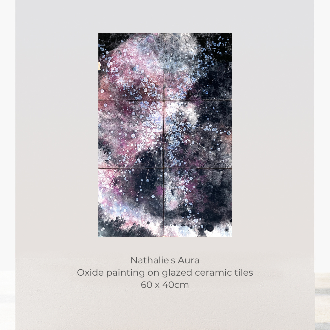 Her work—spanning azulejos and multi-technique art—explores how materials, forms, and frequencies affect the body and perception of space. Drawing on sacred geometry, intuitive movement, and chromatic fields, she creates installations as energetic ecosystems, opening portals to the unseen. Her public commission for a social housing building near Paris earned the 2025 Regional Prize from Ateliers d’Art de France (Heritage category). Her work invites a shift in perspective, revealing subtle dimensions that shape our human experience.