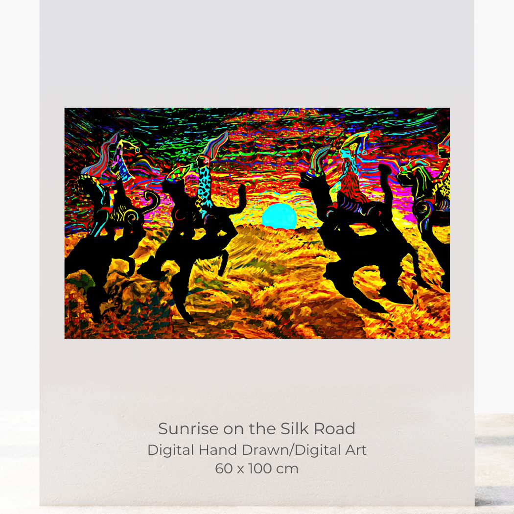 Fluidity and Motion: these are fundamental to my process. I use many elements and techniques from oil painting to Diffusion AI. I am always compelled to instill dynamism with bold brushstrokes, vivid colors, expressive lighting, and creative use of music and video. I like a sense of balancing on the precipice. I hope viewers find their own interpretations.